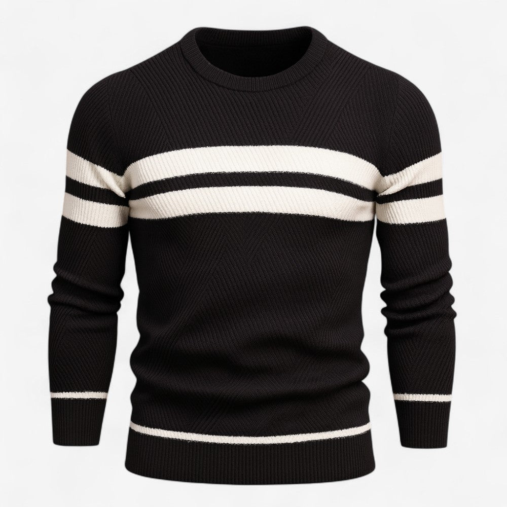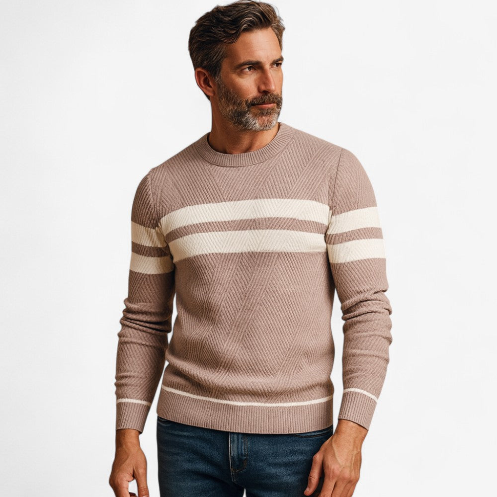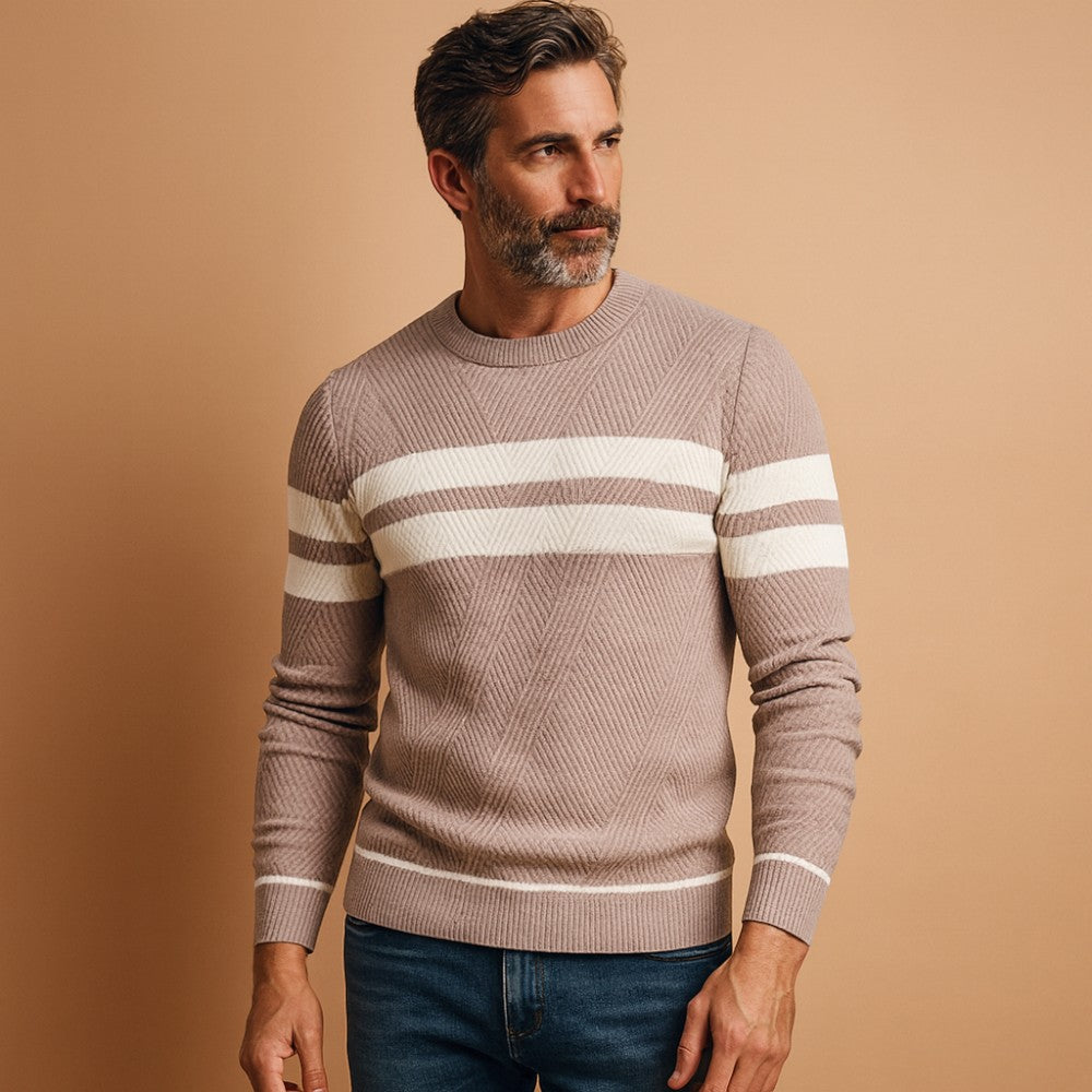 Bram – Gestreepte Trui met Ronde Hals en Geribbelde Details