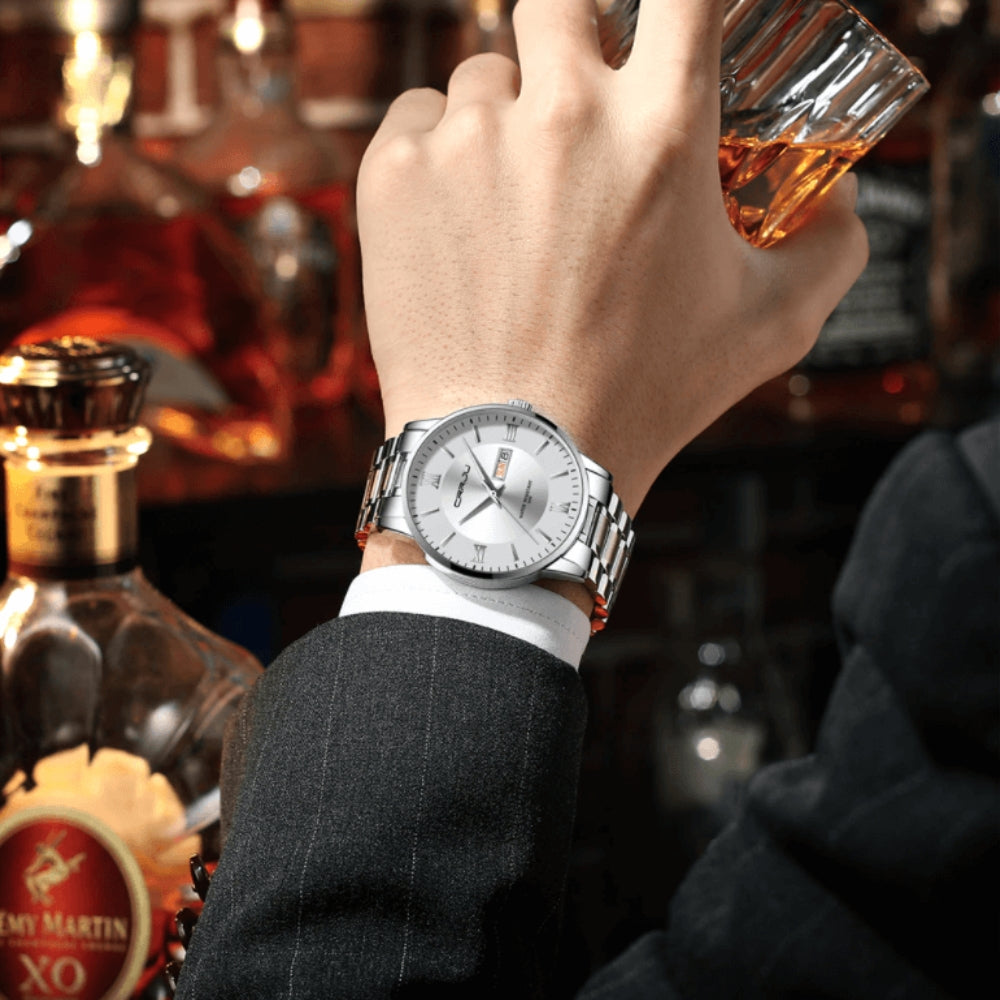 Ethan is een gedurfd en verfijnd horloge dat ontworpen is als aanvulling op zowel casual als formele stijlen. De sportieve wijzerplaat wordt in balans gehouden door een gestroomlijnde band en veelzijdige wijzerplaatindeling. Of je nu vergaderingen of weekendbijeenkomsten bijwoont, dit horloge geeft je uitstraling een sterke, zelfverzekerde finish. Het is het perfecte statement voor iedereen die een blijvende indruk wil achterlaten.