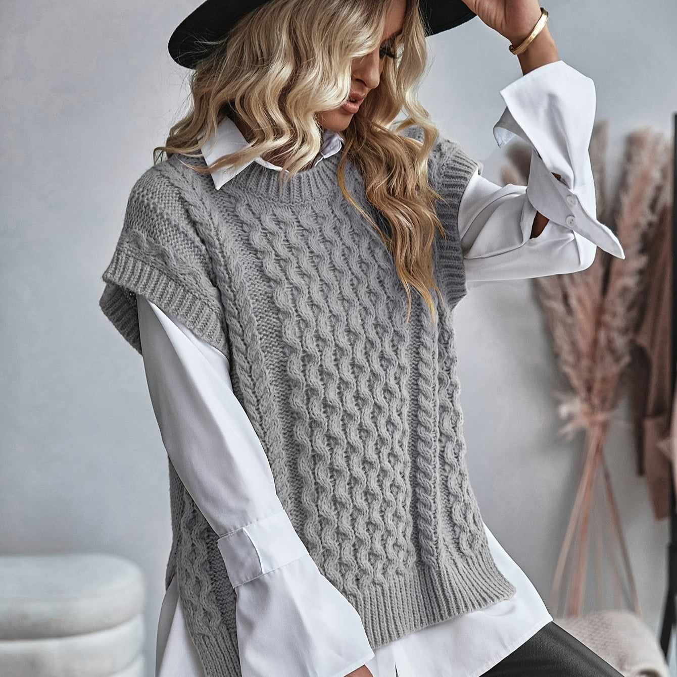 Gisela - Mouwloze gebreide trui met stijl en laagjescomfort