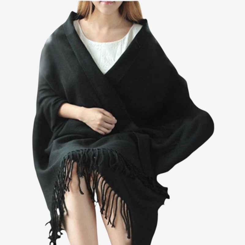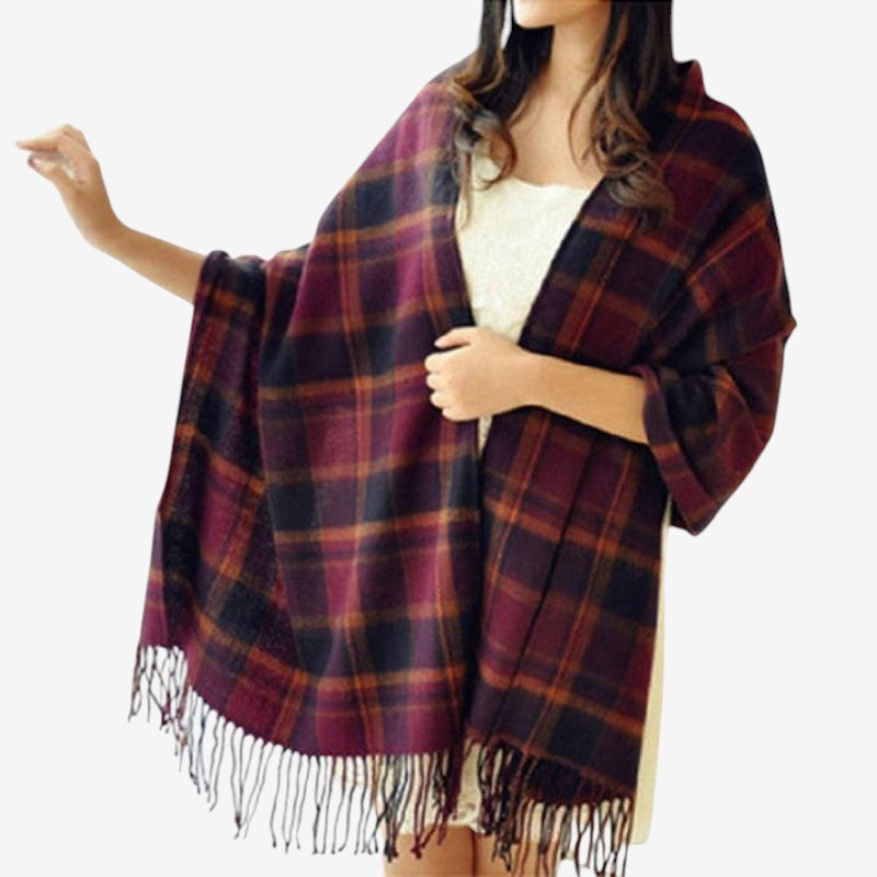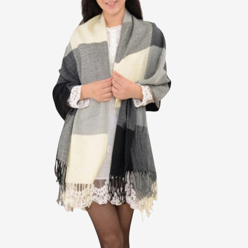 - Grote sjaal met decoratieve kwastaccenten
