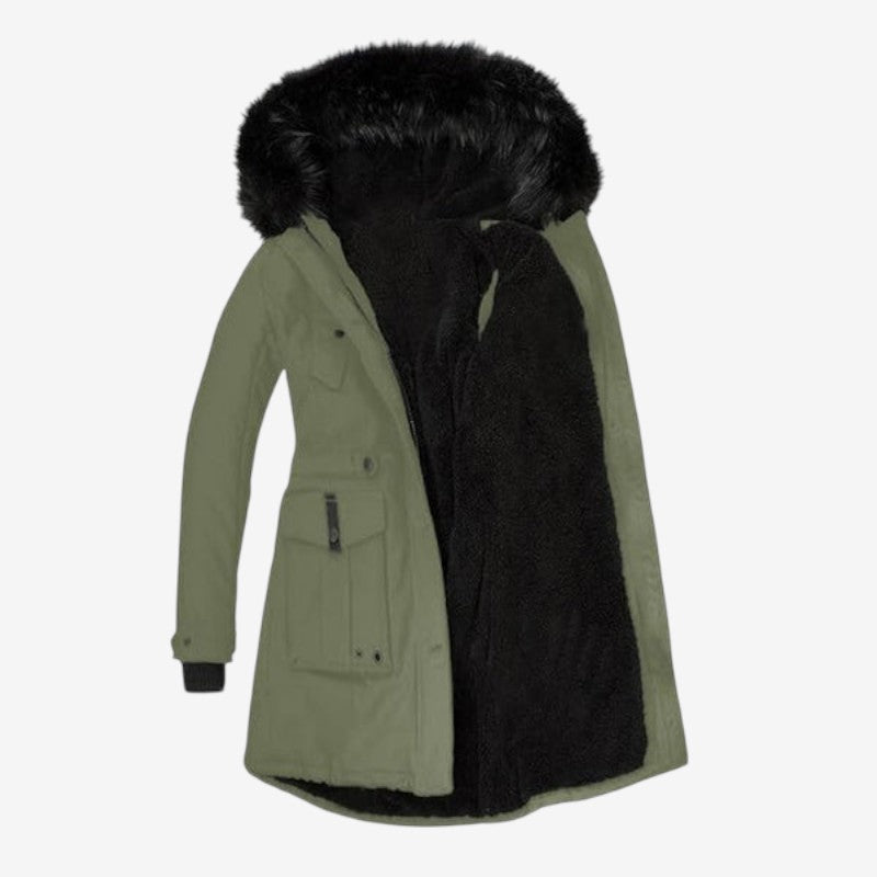 Julia – Jas met lange mouwen verstelbare capuchon en meerdere zakken