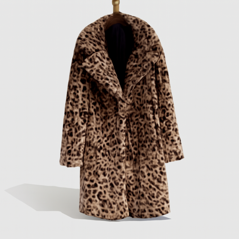 Leona – Jas van imitatiebont met luipaardprint en reverskraag